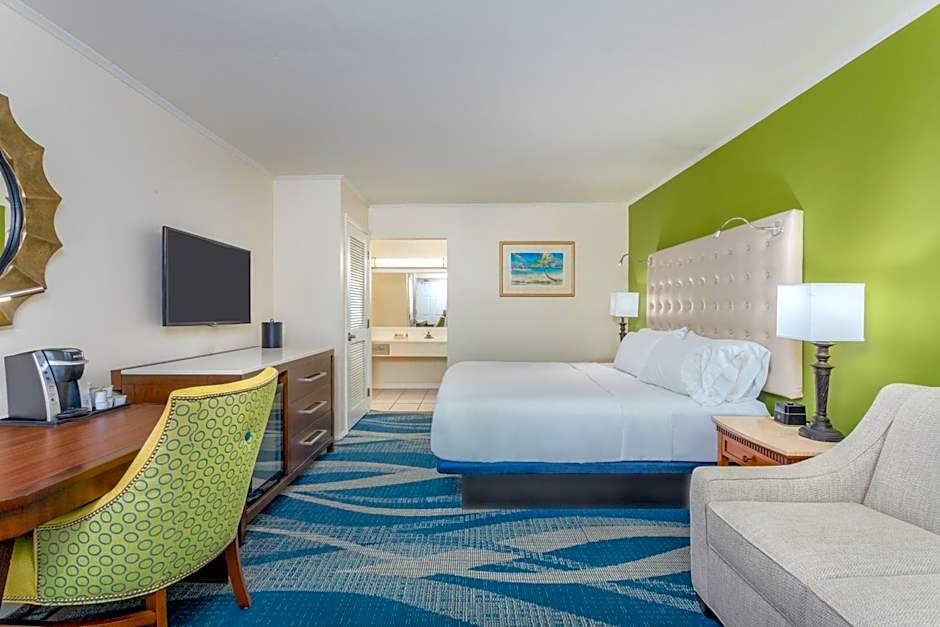 This room has pool and garden views, a refrigerator and a 37-inch flat-screen TV.